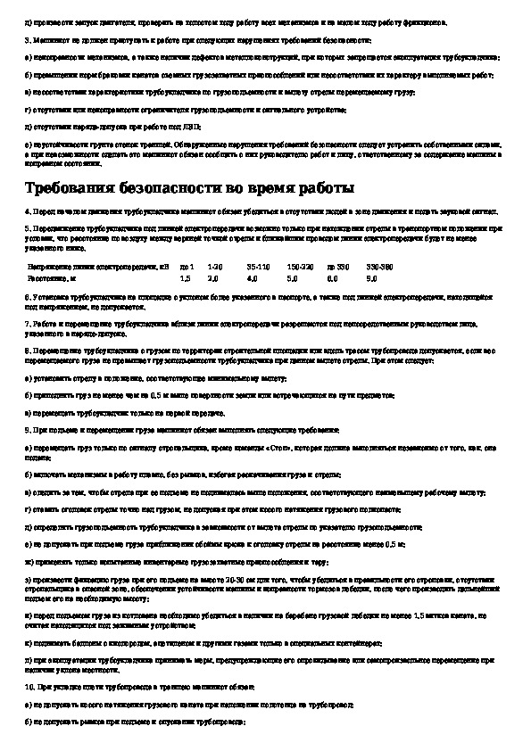 Типовая инструкция по охране труда для машинистов трубоукладчиков