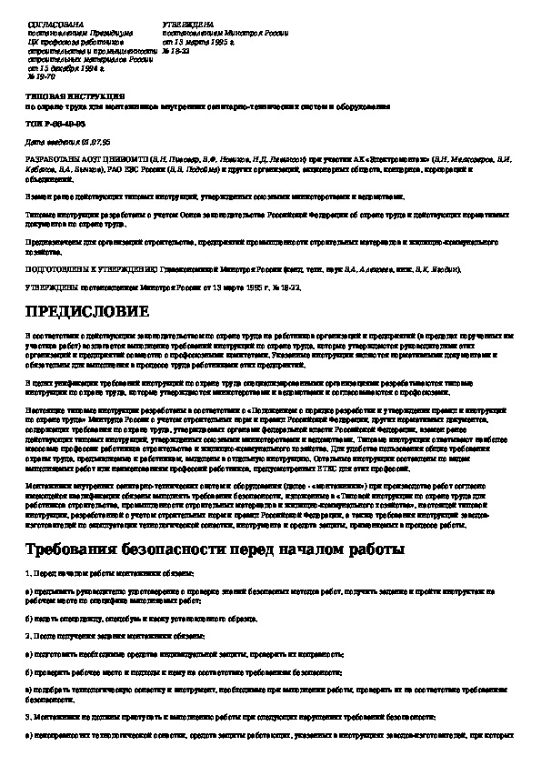Наша цель состоит в том, чтобы предоставить вам быстрый доступ к содержанию документа Типовая инструкция по охране труда для монтажников внутренних санитарно-технических систем и оборудования.