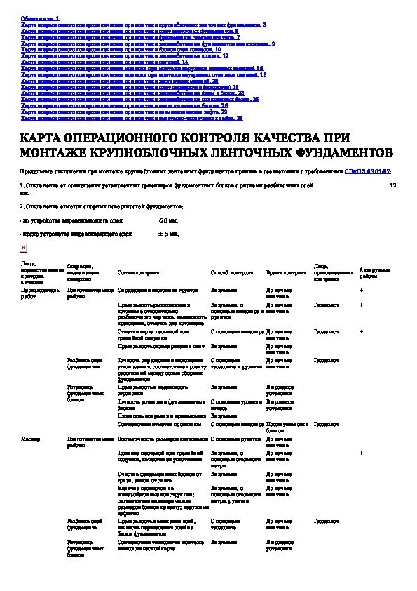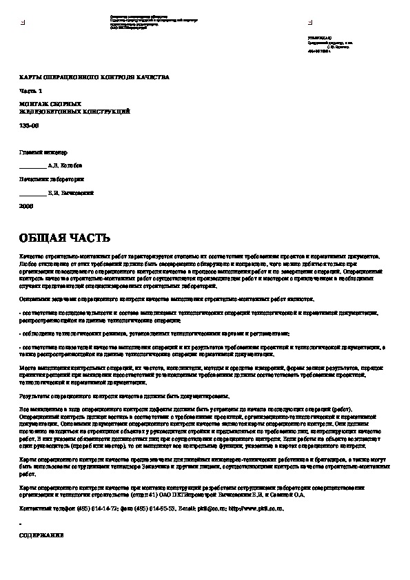 Наша цель состоит в том, чтобы предоставить вам быстрый доступ к содержанию документа Карты операционного контроля качества. Часть 1. Монтаж сборных железобетонных конструкций.