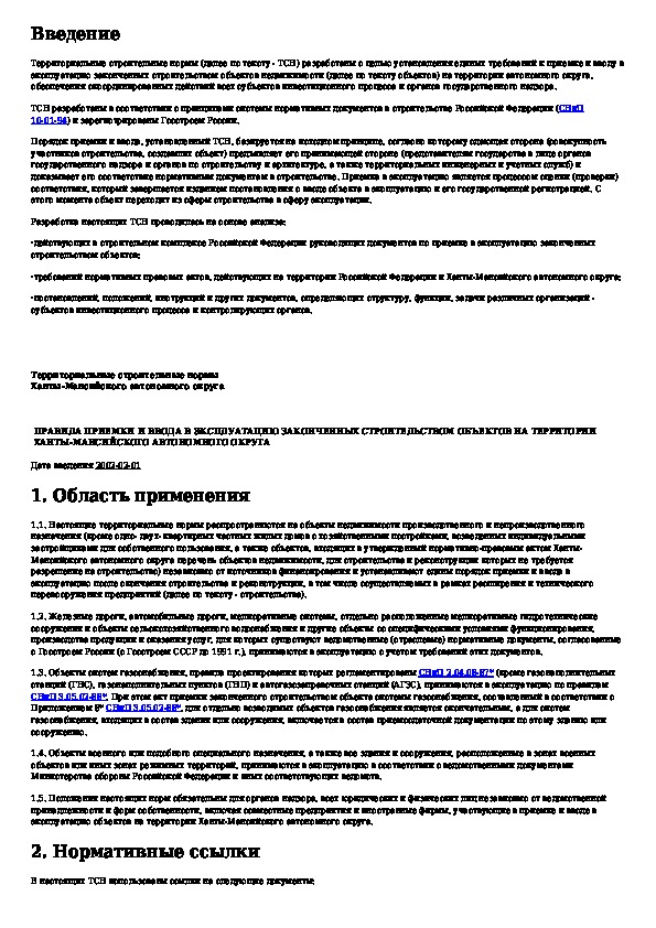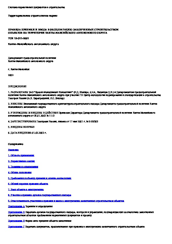 ТСН 12-311-2001: Правила приемки и ввода в эксплуатацию законченных строительством объектов на территории Ханты-Мансийского автономного округа