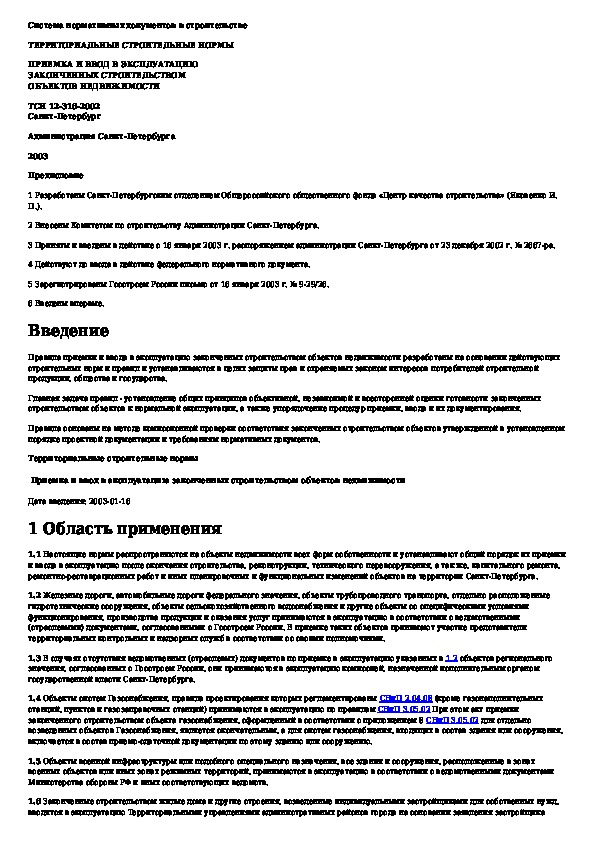 ТСН 12-316-2002: Приемка и ввод в эксплуатацию законченных строительством объектов недвижимости. г. Санкт-Петербург