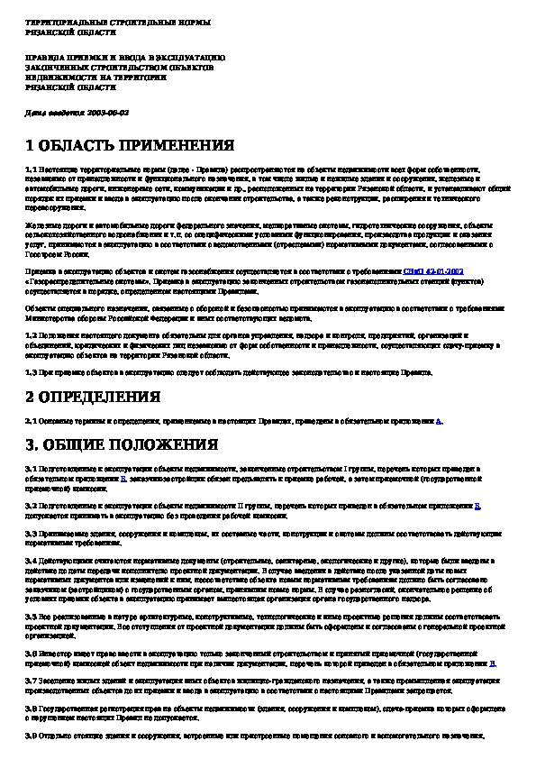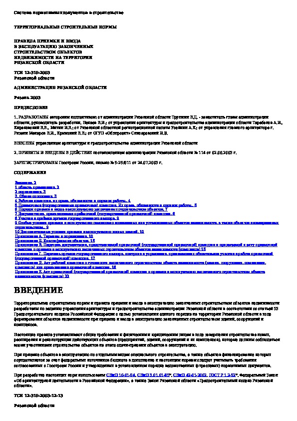 ТСН 12-319-2003: Правила приемки и ввода в эксплуатацию законченных строительством объектов недвижимости на территории Рязанской области