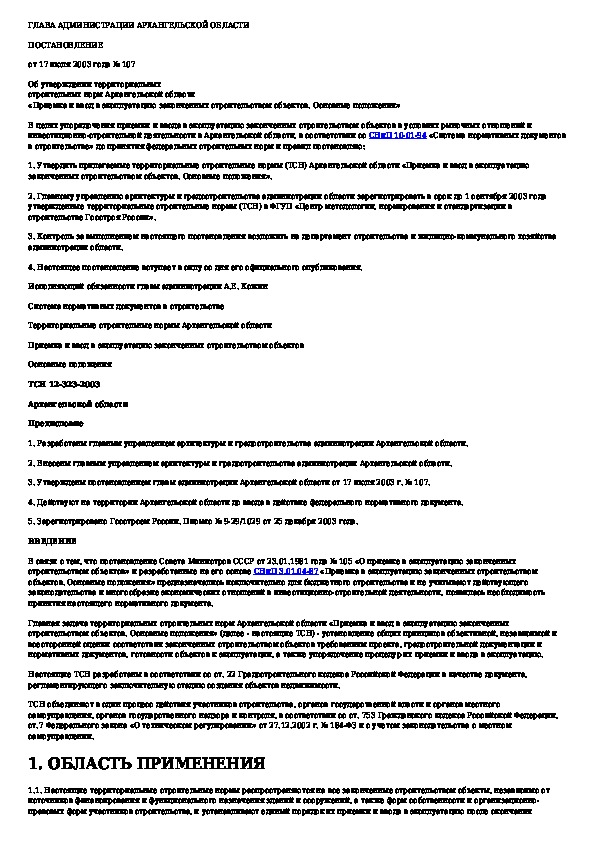 ТСН 12-323-2003: Приемка и ввод в эксплуатацию законченных строительством объектов. Основные положения. Архангельская область