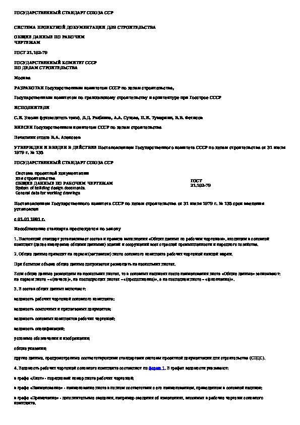 ГОСТ 21.102-79: Система проектной документации для строительства. Общие данные по рабочим чертежам