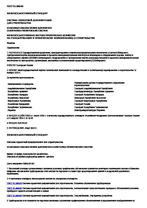 ГОСТ 21.205-93: Система проектной документации для строительства. Условные обозначения элементов санитарно-технических систем