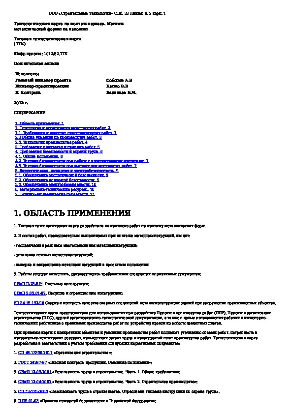 Наша цель состоит в том, чтобы предоставить вам быстрый доступ к содержанию документа Технологическая карта на монтаж каркаса. Монтаж металлической фермы на колонны.