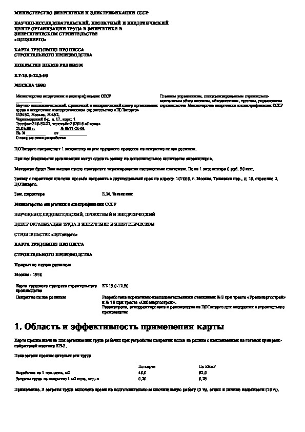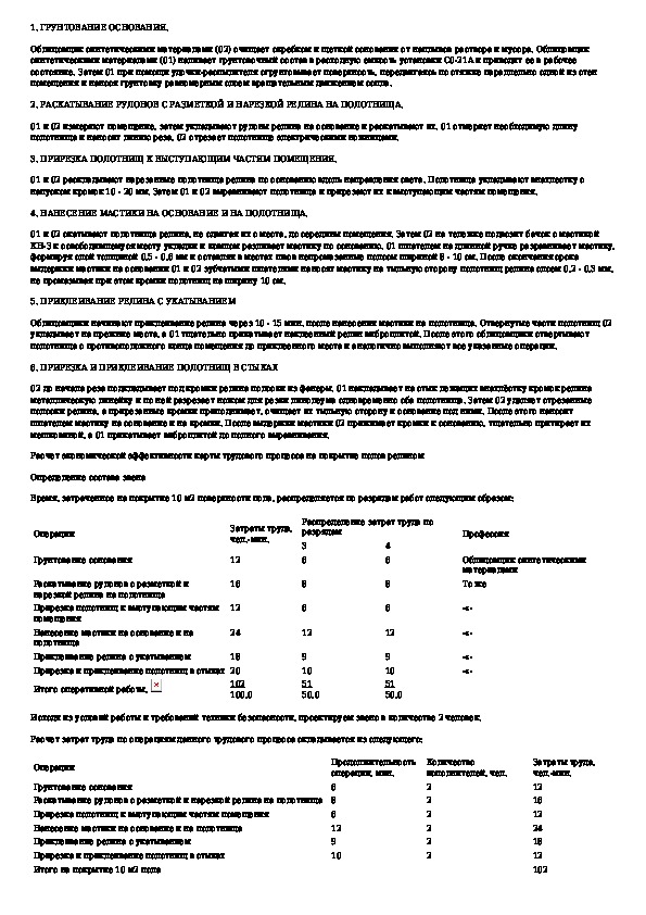 Карта трудового процесса строительного производства. Покрытие полов релином