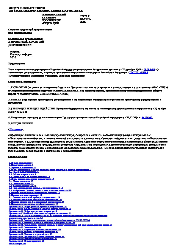 ГОСТ Р 21.1101-2009: Система проектной документации для строительства. Основные требования к проектной и рабочей документации