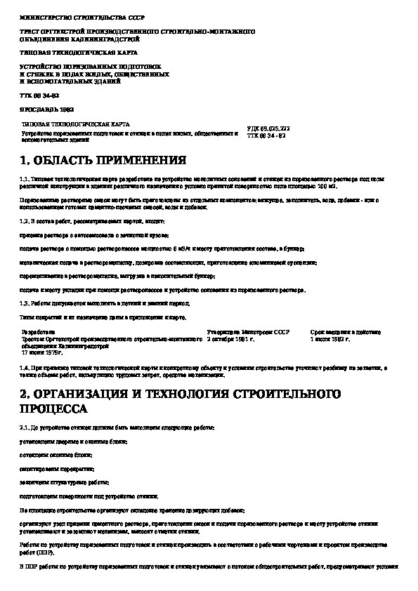 ТТК 66 34-82: Типовая технологическая карта. Устройство поризованных подготовок и стяжек в полах жилых, общественных и вспомогательных зданий