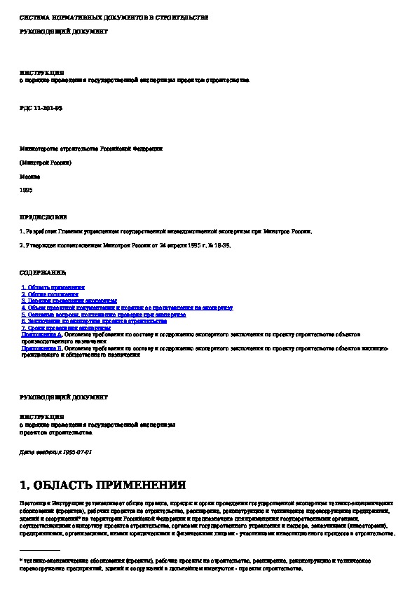 РДС 11-201-95: Инструкция о порядке проведения государственной экспертизы проектов строительства