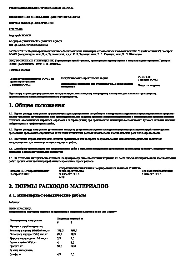 РСН 71-88: Инженерные изыскания для строительства. Нормы расхода материалов
