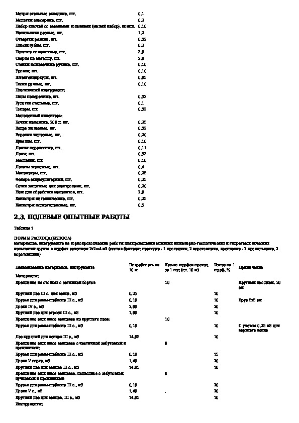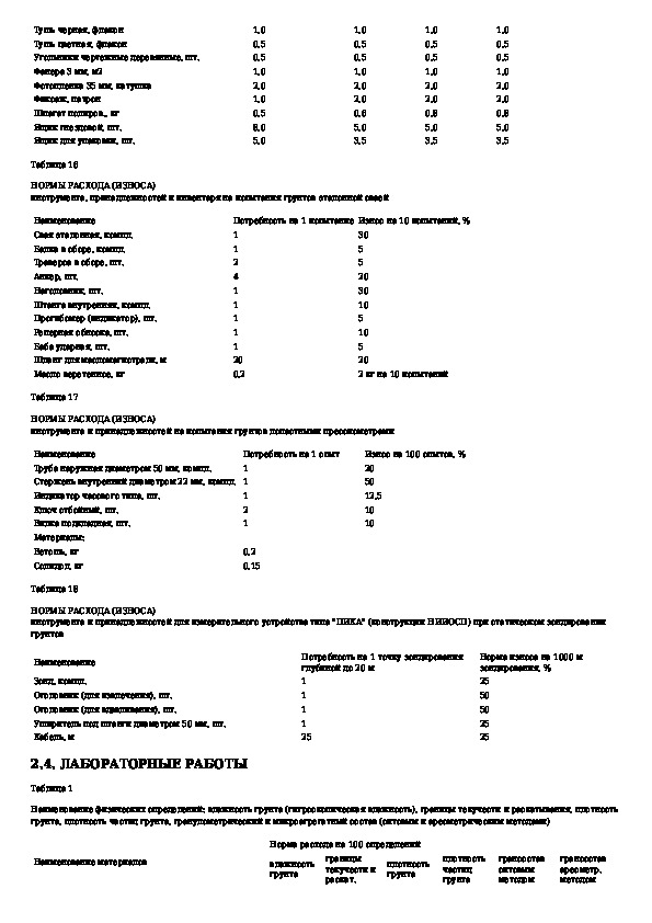 Инженерные изыскания для строительства. Нормы расхода материалов