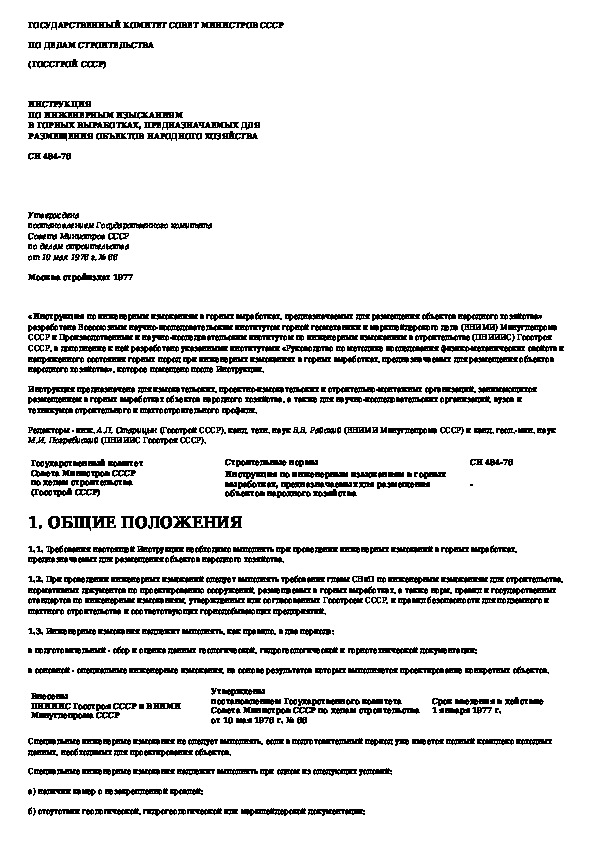 Наша цель состоит в том, чтобы предоставить вам быстрый доступ к содержанию документа Инструкция по инженерным изысканиям в горных выработках, предназначаемых для размещения объектов народного хозяйства.
