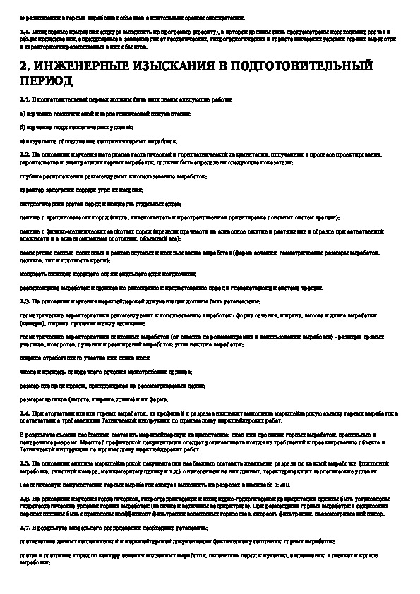 Инструкция по инженерным изысканиям в горных выработках, предназначаемых для размещения объектов народного хозяйства