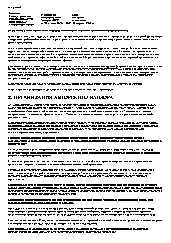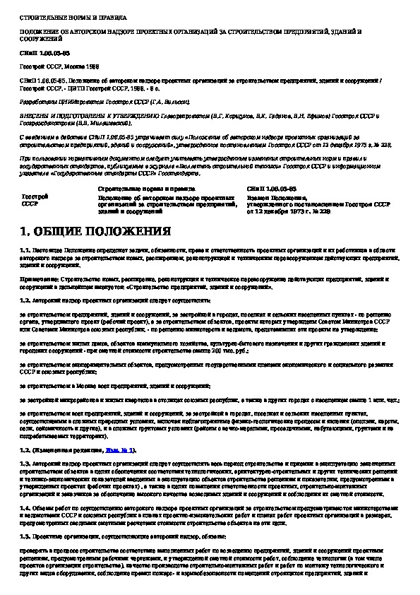 СНиП 1.06.05-85: Положение об авторском надзоре проектных организаций за строительством предприятий, зданий и сооружений