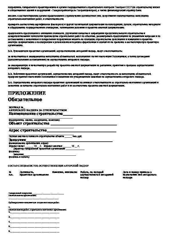 Положение об авторском надзоре проектных организаций за строительством предприятий, зданий и сооружений