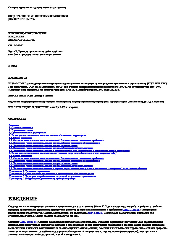 Наша цель состоит в том, чтобы предоставить вам быстрый доступ к содержанию документа Инженерно-геологические изыскания для строительства. Часть V. Правила производства работ в районах с особыми природно-техногенным.