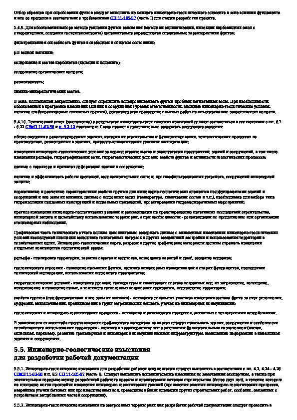 СП 11-105-97: Инженерно-геологические изыскания для строительства. Часть V. Правила производства работ в районах с особыми природно-техногенным
