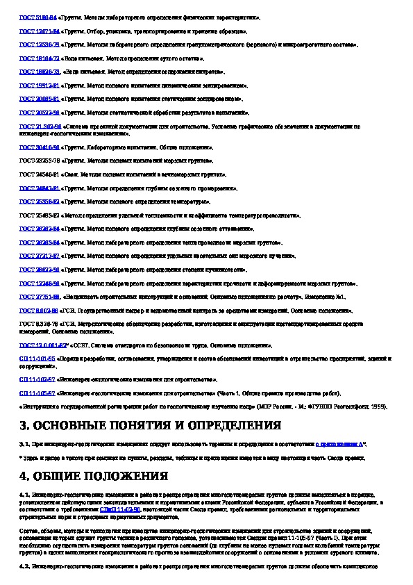 СП 11-105-97: Инженерно-геологические изыскания для строительства. Часть IV. Правила производства работ в районах распространения многолетнеме