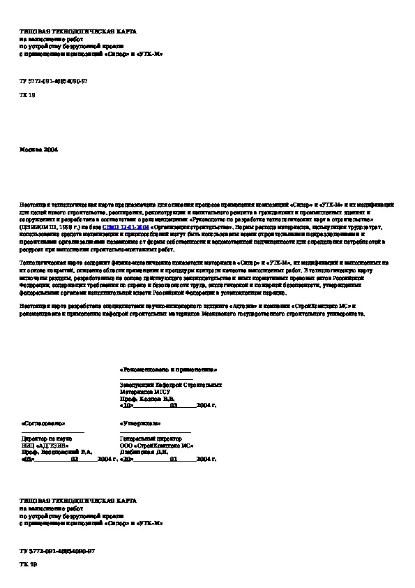 ТК 19: Типовая технологическая карта на выполнение работ по устройству безрулонной кровли с применением композиций "Силор" и "УТК-М"