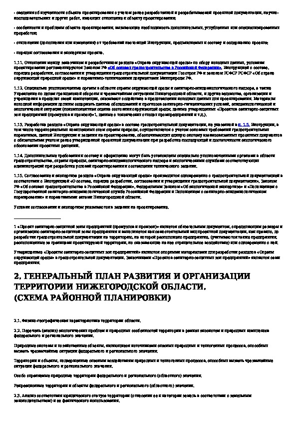 Инструкция о составе, порядке разработки и согласования раздела "Охрана окружающей среды" в градостроительной документации Нижег