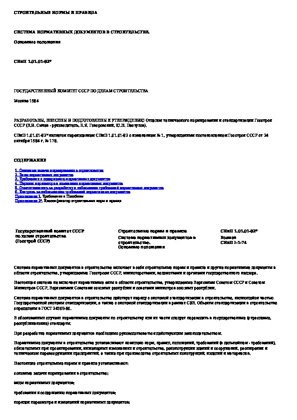 СНиП 1.01.01-82*: Система нормативных документов в строительстве. Основные положения