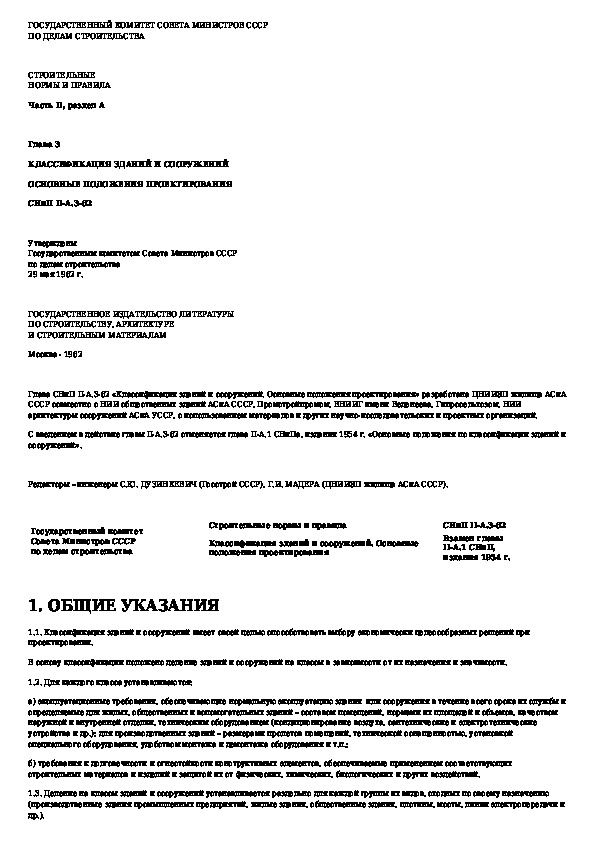 СНиП II-А.3-62: Классификация зданий и сооружений. Основные положения проектирования