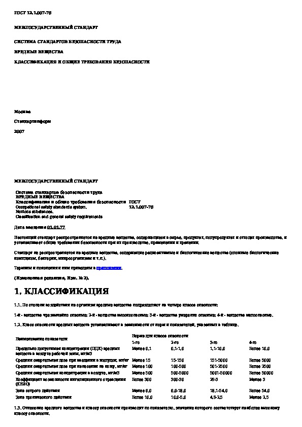 Система стандартов безопасности труда. Вредные вещества. Классификация и общие требования безопасности