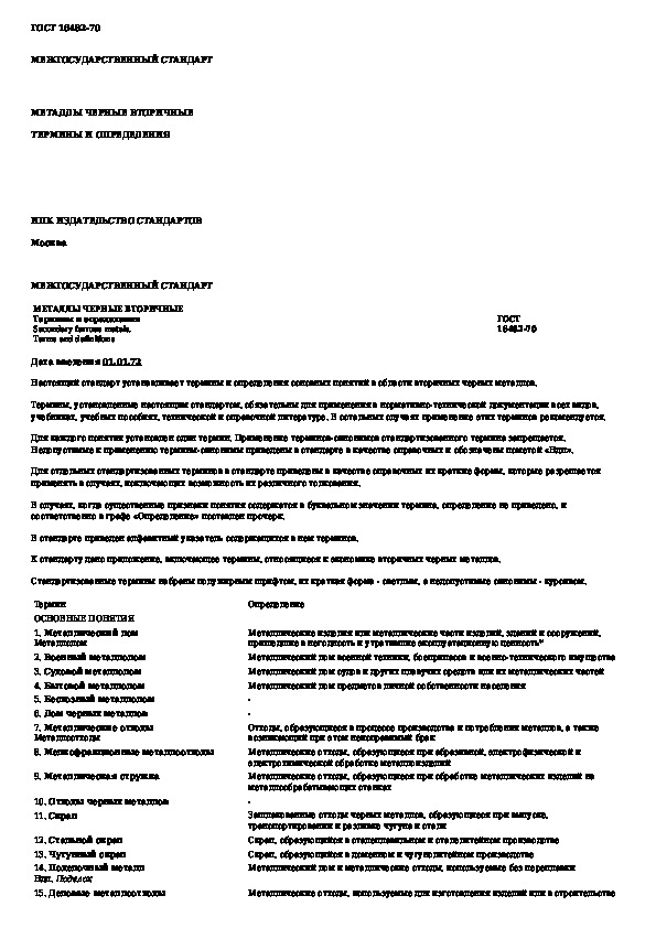 ГОСТ 16482-70: Металлы черные вторичные. Термины и определения
