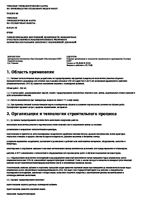 Наша цель состоит в том, чтобы предоставить вам быстрый доступ к содержанию документа Типовая технологическая карта на отделочные работы. Торкретирование внутренней поверхности монолитных участков сборного железо.