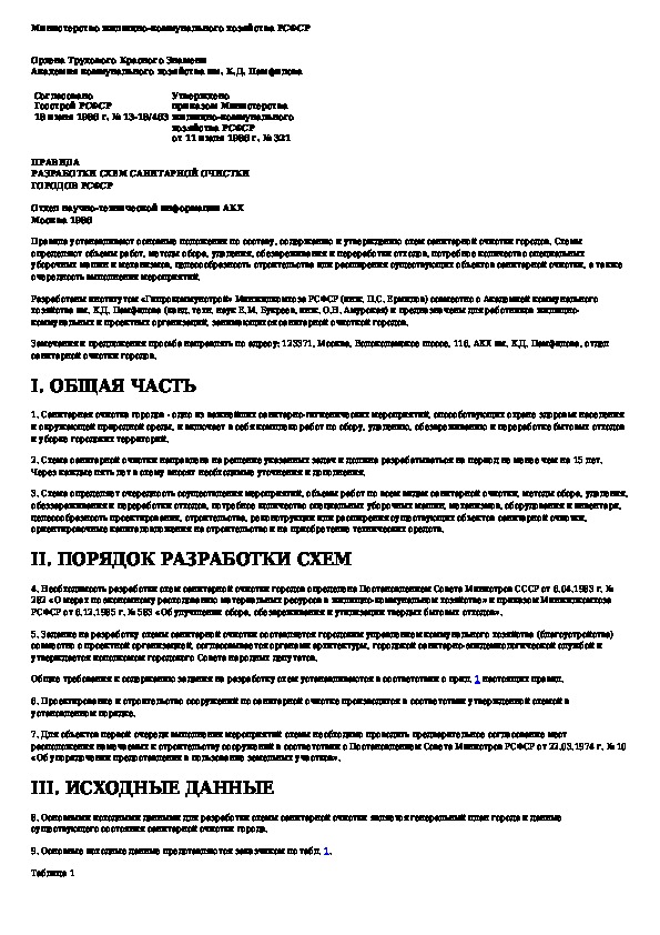Правила разработки схем санитарной очистки городов РСФСР