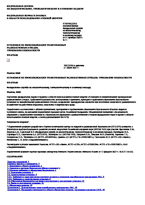 Наша цель состоит в том, чтобы предоставить вам быстрый доступ к содержанию документа Установки по иммобилизации трансурановых радиоактивных отходов. Требования безопасности.