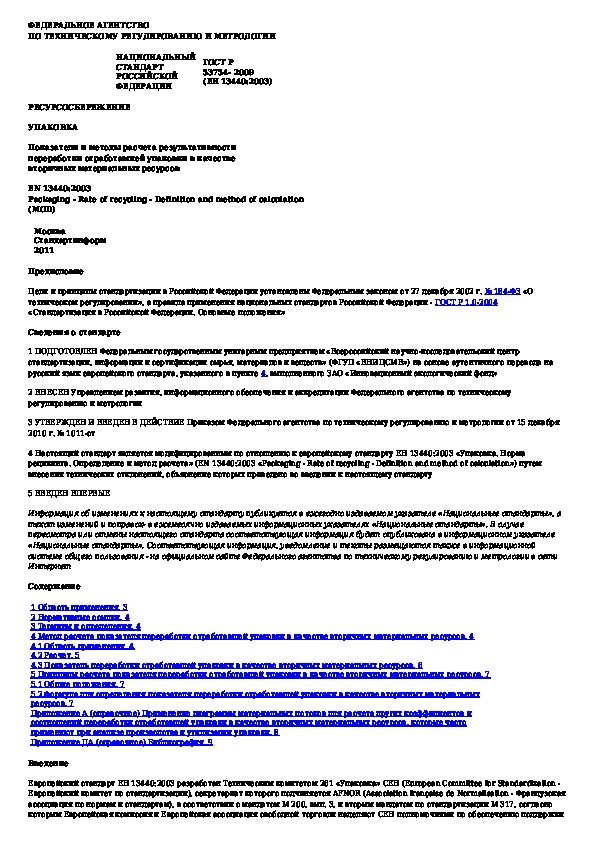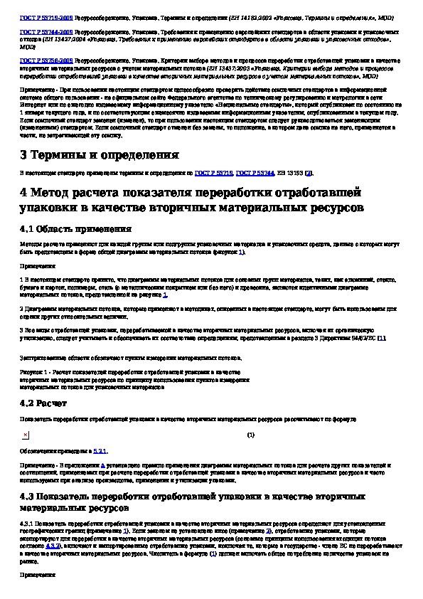 ГОСТ Р 53754-2009: Ресурсосбережение. Упаковка. Показатели и методы расчета результативности переработки отработавшей упаковки в качестве вторичны