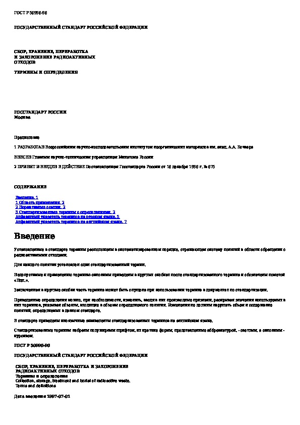 Наша цель состоит в том, чтобы предоставить вам быстрый доступ к содержанию документа Сбор, хранение, переработка и захоронение радиоактивных отходов. Термины и определения.