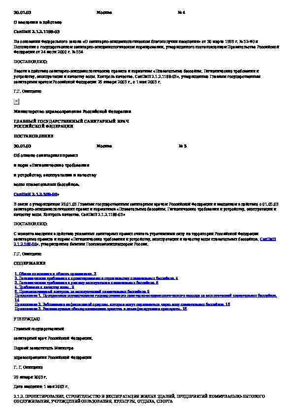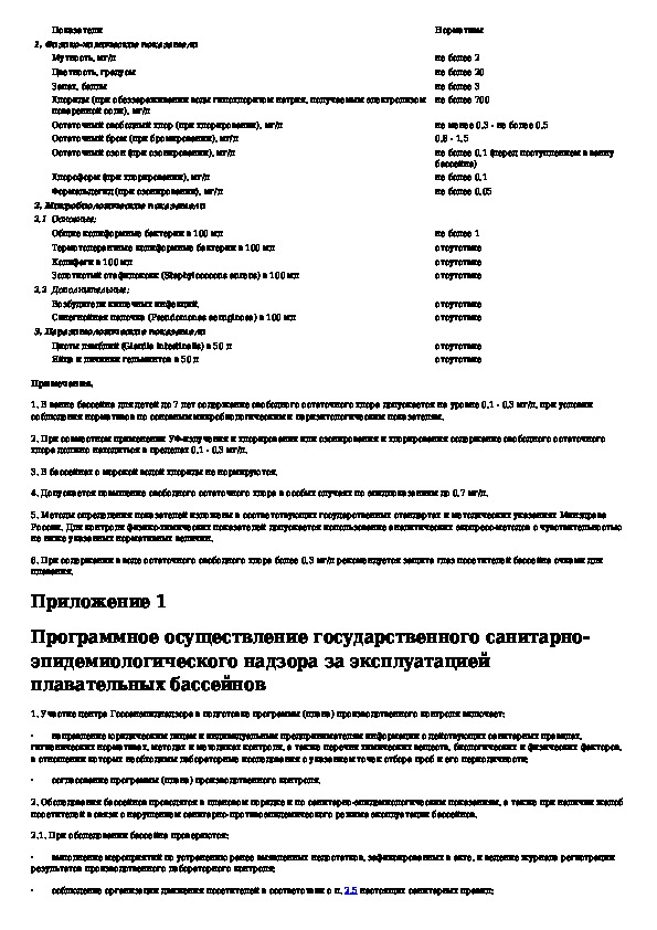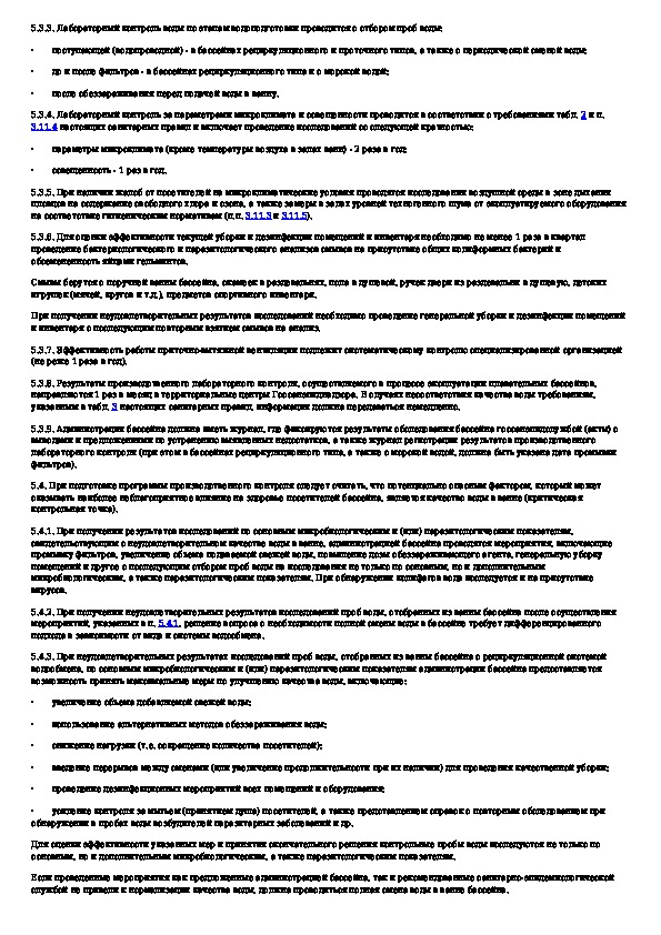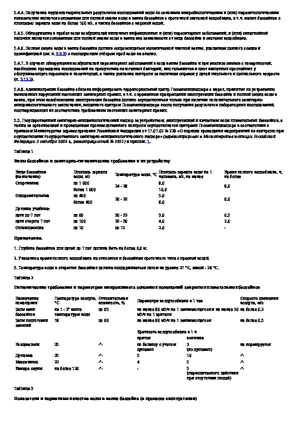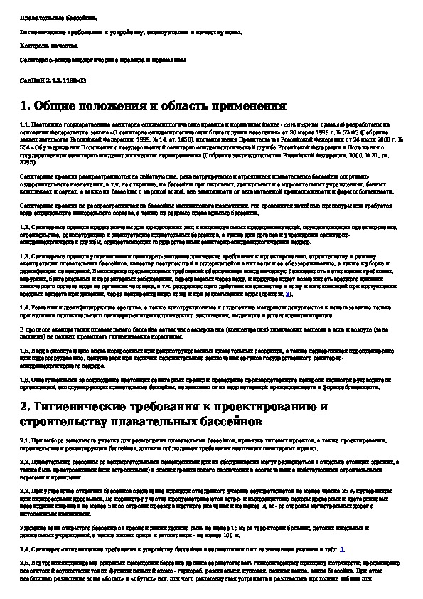 СанПиН 2.1.2.1188-03: Плавательные бассейны. Гигиенические требования к устройству, эксплуатации и качеству воды. Контроль качества