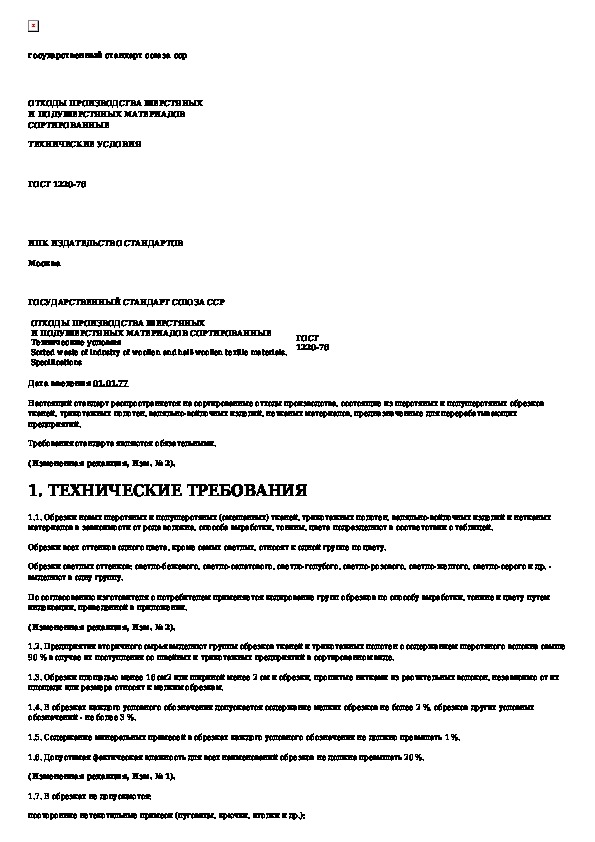 ГОСТ 1220-76: Отходы производства шерстяных и полушерстяных материалов сортированные. Технические условия