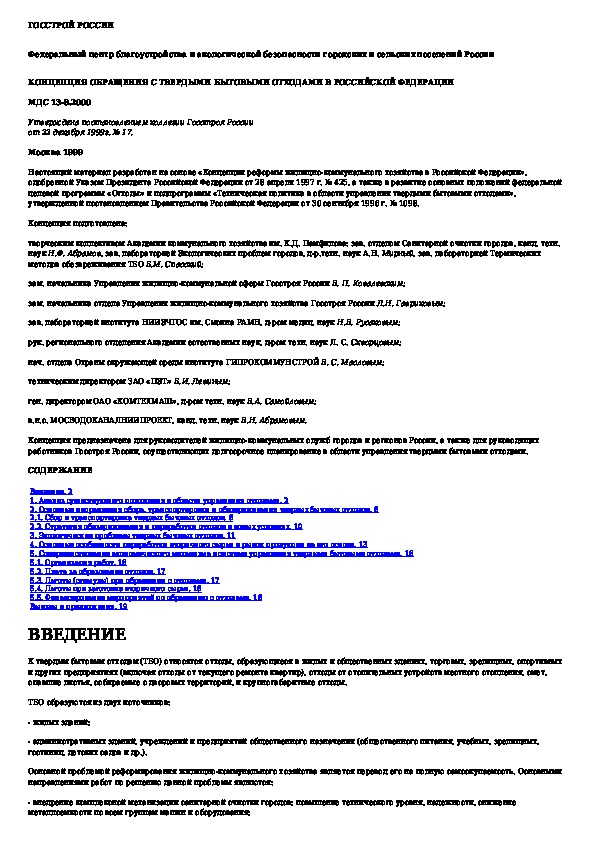 МДС 13-8.2000: Концепция обращения с твердыми бытовыми отходами в Российской Федерации