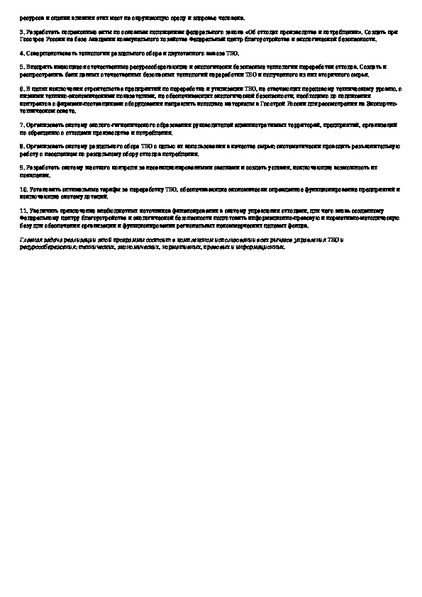 Наша цель состоит в том, чтобы предоставить вам быстрый доступ к содержанию документа Концепция обращения с твердыми бытовыми отходами в Российской Федерации.
