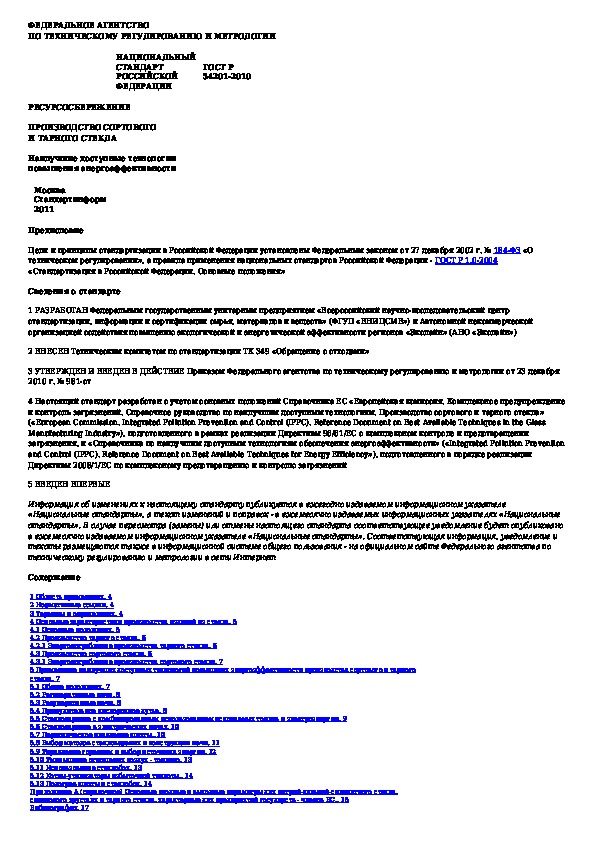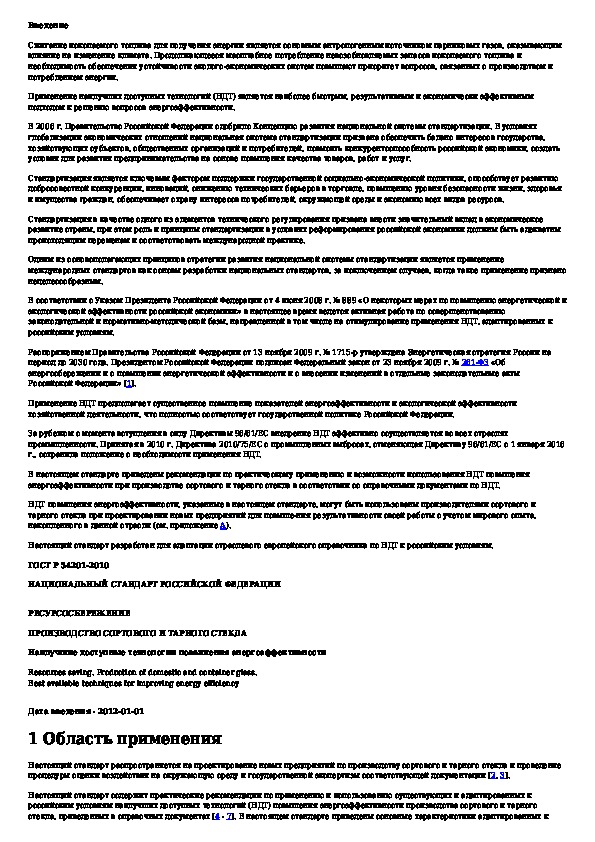 ГОСТ Р 54201-2010: Ресурсосбережение. Производство сортового и тарного стекла. Наилучшие доступные технологии повышения энергоэффективности