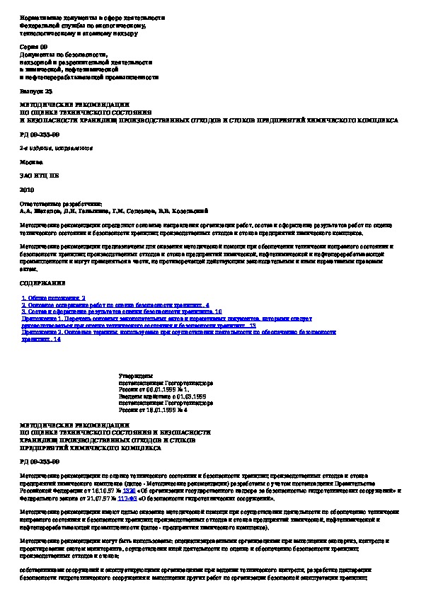Наша цель состоит в том, чтобы предоставить вам быстрый доступ к содержанию документа Методические рекомендации по оценке технического состояния и безопасности хранилищ производственных отходов и стоков предприят.