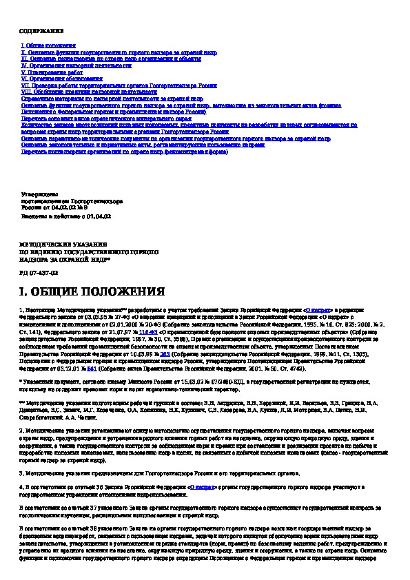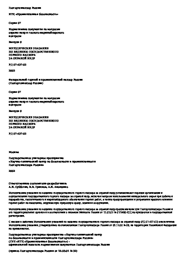 РД 07-437-02: Методические указания по ведению государственного горного надзора за охраной недр