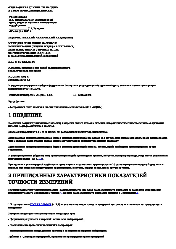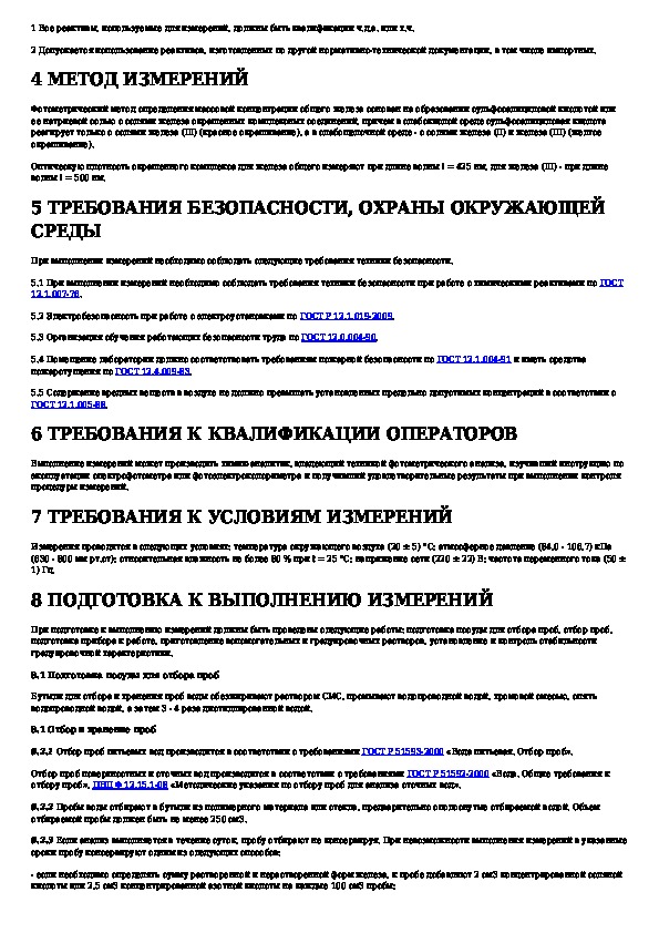 Наша цель состоит в том, чтобы предоставить вам быстрый доступ к содержанию документа Количественный химический анализ вод. Методика измерений массовой концентрации общего железа в питьевых, поверхностных и сточных.