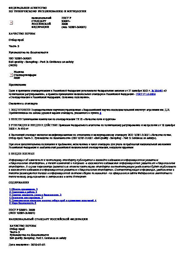 Наша цель состоит в том, чтобы предоставить вам быстрый доступ к содержанию документа Качество почвы. Отбор проб. Часть 3. Руководство по безопасности.