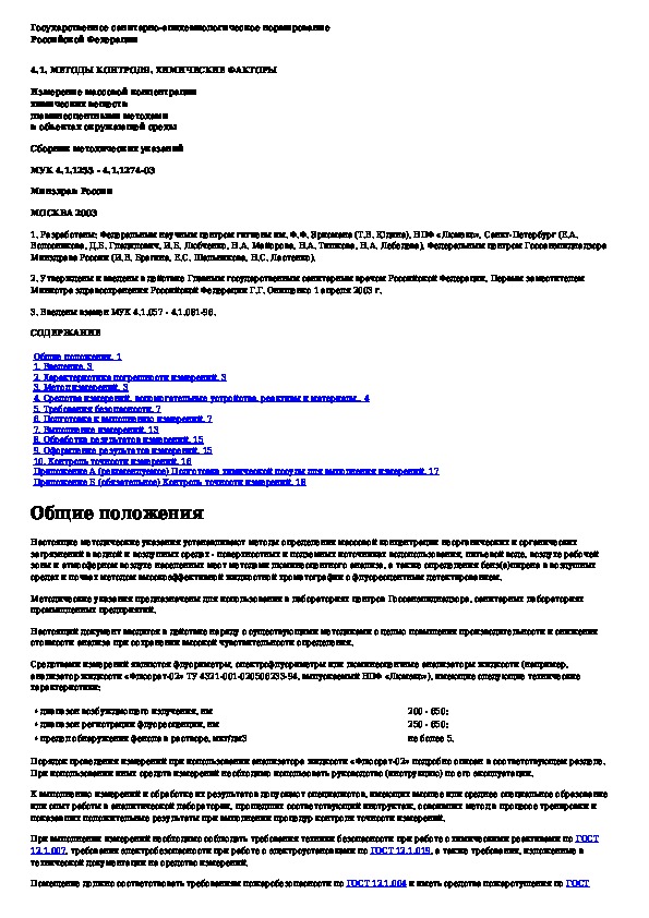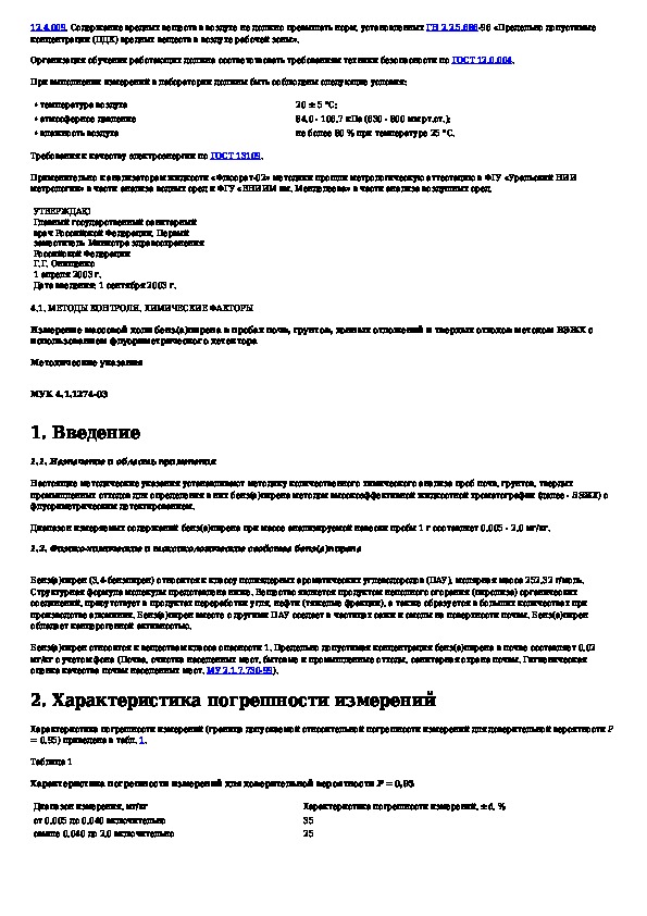 МУК 4.1.1274-03: Измерение массовой доли бенз(а)пирена в пробах почв, грунтов, донных отложений и твердых отходов методом ВЭЖХ с использованием флу