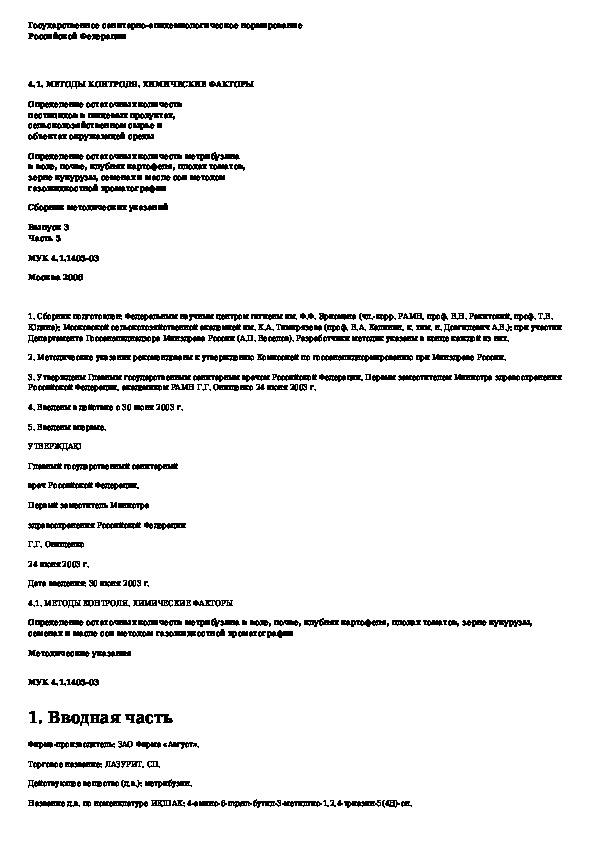 Наша цель состоит в том, чтобы предоставить вам быстрый доступ к содержанию документа Определение остаточных количеств метрибузина в воде, почве, клубнях картофеля, плодах томатов, зерне кукурузы, семенах и масле сои .