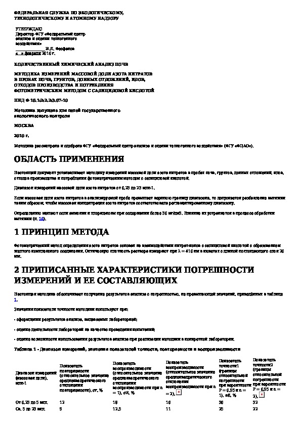 ПНД Ф 16.1:2:2.2:3.67-10: Количественный химический анализ почв. Методика измерений массовой доли азота нитратов в пробах почв, грунтов, донных отложений, и