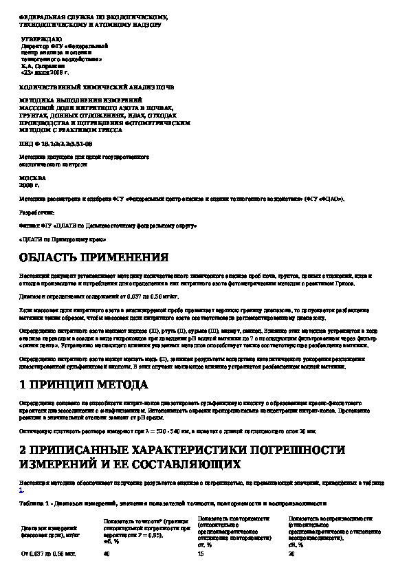 Наша цель состоит в том, чтобы предоставить вам быстрый доступ к содержанию документа Количественный химический анализ почв. Методика выполнения измерений массовой доли нитритного азота в почвах, грунтах, донных отл.