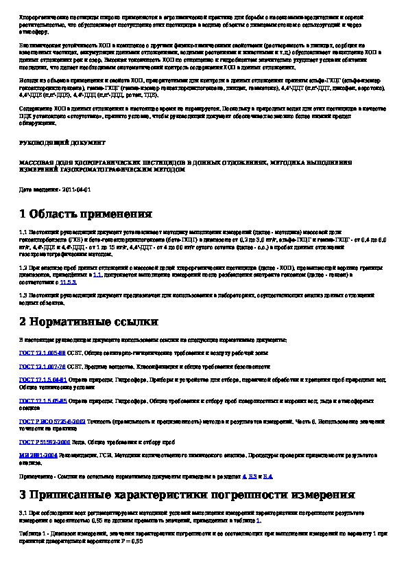 Наша цель состоит в том, чтобы предоставить вам быстрый доступ к содержанию документа Массовая доля хлорорганических пестицидов в донных отложениях. Методика выполнения измерений газохроматографическим методом.