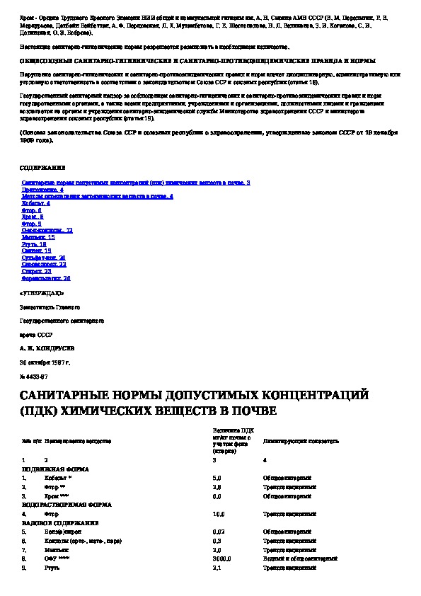 Наша цель состоит в том, чтобы предоставить вам быстрый доступ к содержанию документа Санитарные нормы допустимых концентраций химических веществ в почве.