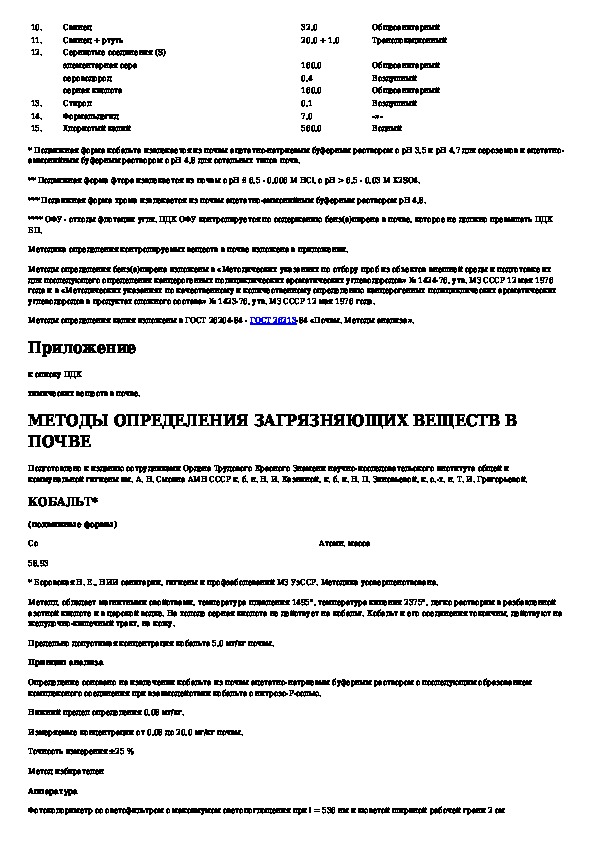 Санитарные нормы допустимых концентраций химических веществ в почве